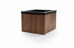 Front wykonany z drewna orzecha Canaletto dodaje elegancji i spójnie komponuje się z nowoczesnymi barami. Połączenie metalu, gumy i szlachetnego drewna sprawia, że baza jest zarówno funkcjonalna, jak i reprezentacyjna.